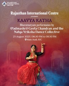 जयपुर में 25 अगस्त 2025 को संगीत,भाव और कथाओं से सराबोर एक खास शाम का साक्षी बनेगा।सुप्रसिद्ध नृत्यांगना पद्मश्री गीता चंद्रन सोमवार को शाम 6ः30 बजे राजस्थान इंटरनेशनल सेंटर के तत्वावधान में आयोजित होने वाले ’काव्य कथा’ में नाट्य वृक्ष डांस कलेक्टिव के साथ भरतनाट्यम प्रस्तुतियां देंगी।
