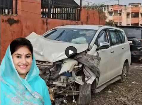 एक्सीडेंट के बाद राजसमंद विधायक दीप्ति किरण माहेश्वरी की कार की हालत कुछ ऐसी हो गई थी।