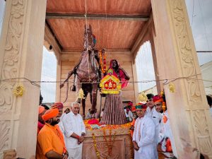 केंद्रीय कृषि एवं किसान कल्याण राज्य मंत्री तथा अजमेर सांसद भागीरथ चौधरी ने मंगलवार को नागौर प्रवास के दौरान लाडवा (रिया बड़ी) में “तेजा दशमी” के अवसर पर आयोजित सत्यवादी वीर तेजाजी महाराज के नव-निर्मित मंदिर एवं मूर्ति प्राण-प्रतिष्ठा समारोह में सहभागिता की।