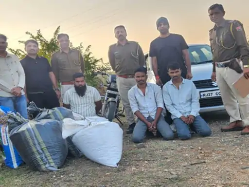 राजसमंद में 3 बदमाश गिरफ्तार:70 किलो डोडा-चूरा से भरी कार पकड़ी, एस्कॉर्ट कर रही बाइक भी जब्त