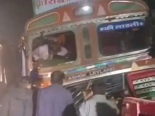 मांडल में NH-48 पर भीषण हादसा, ट्रक चालक गंभीर घायल:आगे चल रहे ट्रक चालक के अचानक ब्रेक लगाने से हुआ हादसा