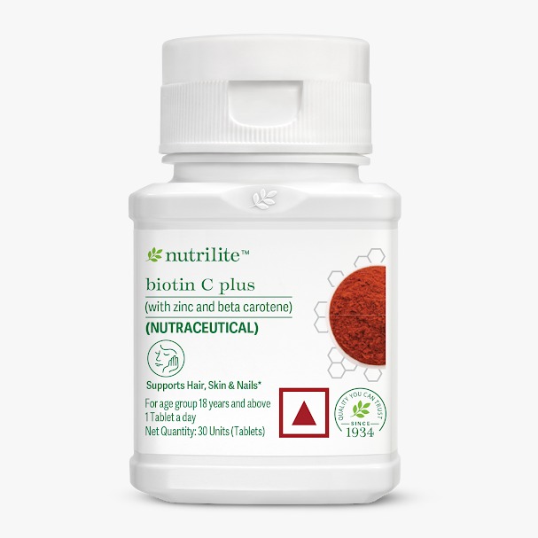 न्यूट्रिलाइट बायोटिन सी प्लस (जिंक एवं बीटा कैरोटीन के साथ) आवश्यक पोषक तत्वों के सावधानीपूर्वक चुने गए संयोजन के साथ तैयार किया गया है। बायोटिन बालों की वृद्धि और फॉलिकल स्वास्थ्य को सहारा देता है। जिंक नाखूनों को मज़बूत बनाए रखने के साथ-साथ त्वचा के स्वास्थ्य में भी मदद करता है। विटामिन सी कोलेजन उत्पादन में सहायक है और कोशिकाओं को ऑक्सीडेटिव तनाव से एंटीऑक्सीडेंट सुरक्षा प्रदान करता है। बीटा कैरोटीन—जो शैवाल से प्राप्त किया गया है, प्रकृति के सबसे समृद्ध पादप स्रोतों में से एक—यूवी एक्सपोज़र के प्रभाव को कम करने में मदद करके धूप से त्वचा को होने वाली की क्षति के विरुद्ध प्रकृति की ढाल के रूप में कार्य करता है, साथ ही यूवी-प्रेरित एरिथेमा (त्वचा की लालिमा) के विरुद्ध फोटो-प्रोटेक्शन प्रदान करता है।