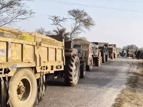 भीलवाड़ा में अवैध बजरी खनन और इसके परिवहन को लेकर लोगों का गुस्सा फूट पड़ा। ग्रामीणों ने गांव से निकल रहे 6 से ज्यादा अवैध बजरी से भरे ट्रैक्टरों को आधे घंटे तक रोके रखा और पुलिस को सूचना दी।
