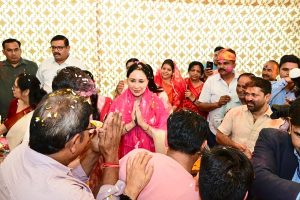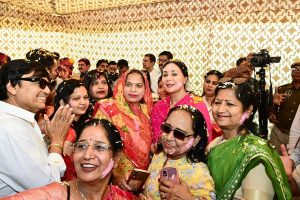 सिविल लाइंस आवास पर उपमुख्यमंत्री दिया कुमारी ने कार्यकर्ताओं संग खेली फूलों की होली