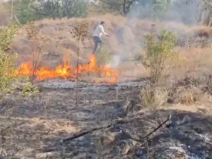 तेना के वन क्षेत्र में लगी आग:ग्रामीणों ने हजारों पौधों को जलने से बचाया, फायर सुविधा पर सवाल