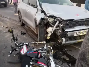 लक्ष्मणगढ़ बाइपास पर कार-बाइक की टक्कर:दो युवक गंभीर घायल, प्राथमिक उपचार के बाद सीकर रेफर