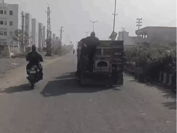 बजरी माफिया को पकड़ने दौड़ते ट्रैक्टर पर चढ़ा पुलिसकर्मी; VIDEO:ड्राइवर ने डिवाइडर को टक्कर मारी, फिर कूद कर भागा, पुलिस वाला भी पकड़ने को कूदा