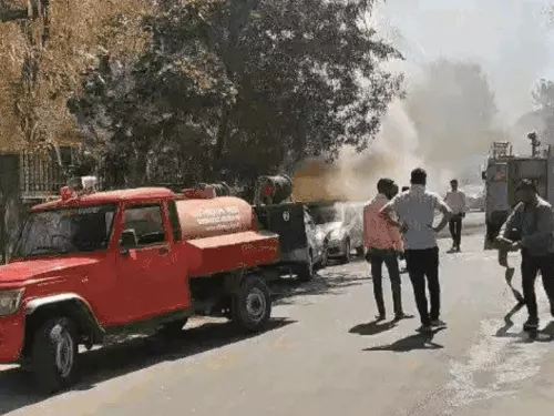 पाली में धूं-धूं कर जल उठी कार:दमकलकर्मियों ने आग पर पाया काबू