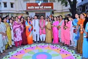 भाजपा के स्थापना दिवस की पूर्व संध्या पर पार्टी कार्यालय में की गई भव्य आतिशबाजी और दीपोत्सव,सजाई गई रंगोली