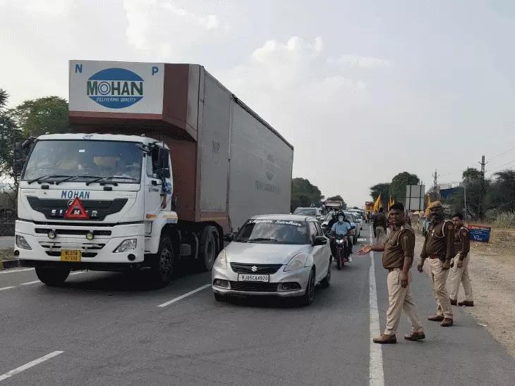 रानोली पुलिस ने श्याम पदयात्रियों को सुरक्षित मार्ग पार कराया:NH-52 पर विशेष व्यवस्था, यातायात नियंत्रित कर रही पुलिस