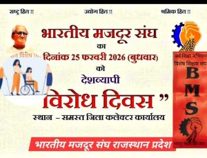 पुरी, ओडिशा में आयोजित 21 वें अखिल भारतीय अधिवेशन के आह्वान पर भारतीय मज़दूर संघ (BMS) 25 फरवरी 2026 को पूरे देश में “विरोध दिवस...