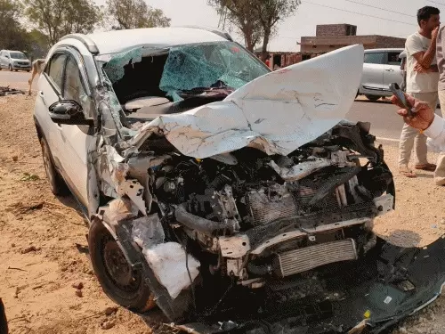 तिंवरी में बस और कार की टक्कर:हादसे में कार ड्राइवर घायल, बस में बैठे सभी यात्री सुरक्षित, घेवड़ा के शिवनगर में हुआ एक्सीडेंट