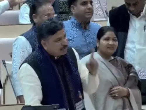 विधानसभा में कांग्रेस विधायक ने किया अभद्र इशारा:कैमरे में हुए कैद, पहले हाथ जोड़कर अभिवादन किया; फिर हंसते हुए किया इशारा