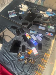 44 एन्ड्ोईड मोबाईल फोन (आईफोन सहित महंगे मोबाईल), 82 एटीएम कार्ड, 9 लेपटॉप, एक टेबलेट मोबाईल , 22 बैक पास बुक, 6 चेक बुक ,...