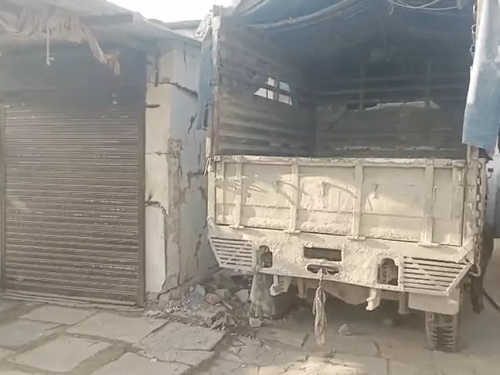 उदयपुर में फाटक तोड़कर घर के अंदर घुसा मिनी ट्रक:तेज आवाज आई तो सहमा परिवार, रात का समय होने से बड़ा हादसा टला