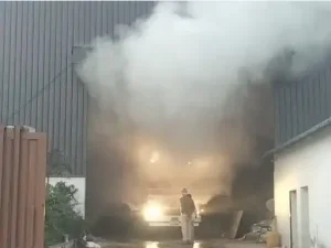 शॉर्ट सर्किट से मूंगफली फैक्ट्री में भीषण आग:लाखों का नुकसान, दमकल ने पाया काबू; जाटावाली रीको इंडस्ट्रियल एरिया में हादसा